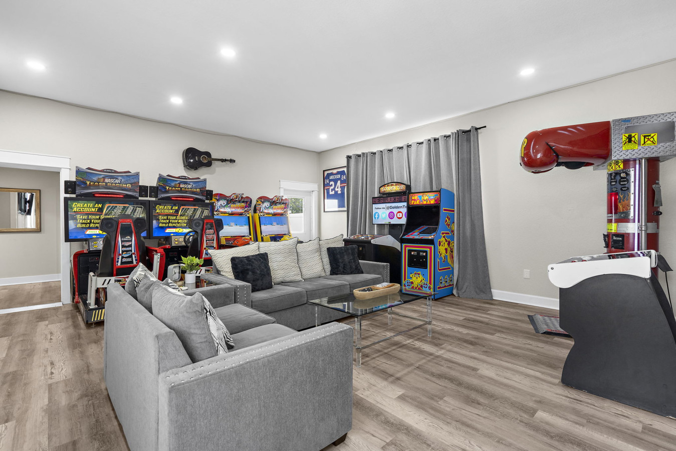 Great home for a large group. Modern and aesthetically appealing. Large table that seats 10, can be used for meals, games and activities for all to be together. The bedroom to restroom ratio is well suited for large gatherings in addition to having access to two kitchens! The arcade room will exceed your expectations! Very fun! We thoroughly enjoyed our time there.